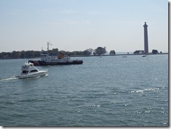 As our boat pulled into the bay, we had a view of the Perry’s Victory and International Peace Memorial monument in the distance, and a large Coast Guard ship heading out to Lake Erie. Almost docked in Put-In-Bay, and the bay is a busy place with some really large boats.